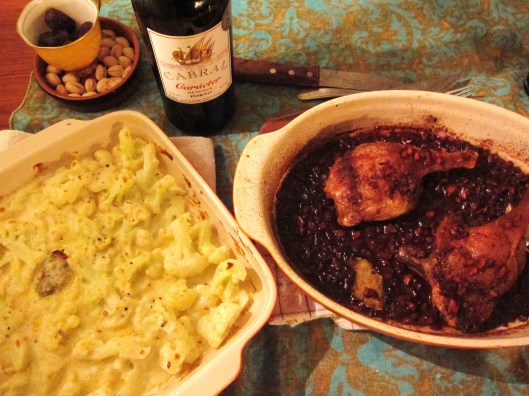 Over the last few days, I’ve had to get serious about the perishable foodstuffs in my kitchen to avoid coming home to a family of rotting bananas and a flock of fruit flies. So, dear readers, the recipe below is one of the many meals this week inspired by my need to make use of the veg and dairy and meat in my fridge before getting on the airplane and making my way through the earmarked pages of my Spanish phrasebook.