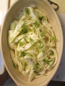 - 1 small fennel bulb, sliced; some frilly green bits reserved