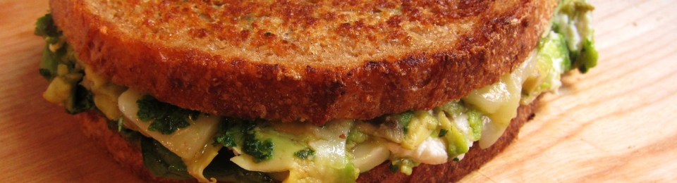 As the weather seems to have dipped into cooler territory – at least for the next few days – I’ve gravitated toward things with a bit more substance. And nothing says “substance” like a good ol’ sloppy grilled cheese, particularly one that is bursting at the sides with not one, but two types of fromage. The following is my antidote to the light and breezy summertime salad. Because, let’s face it – salads are wonderful, but every once and a while it’s nice to cradle something hot and gooey in one’s hands.