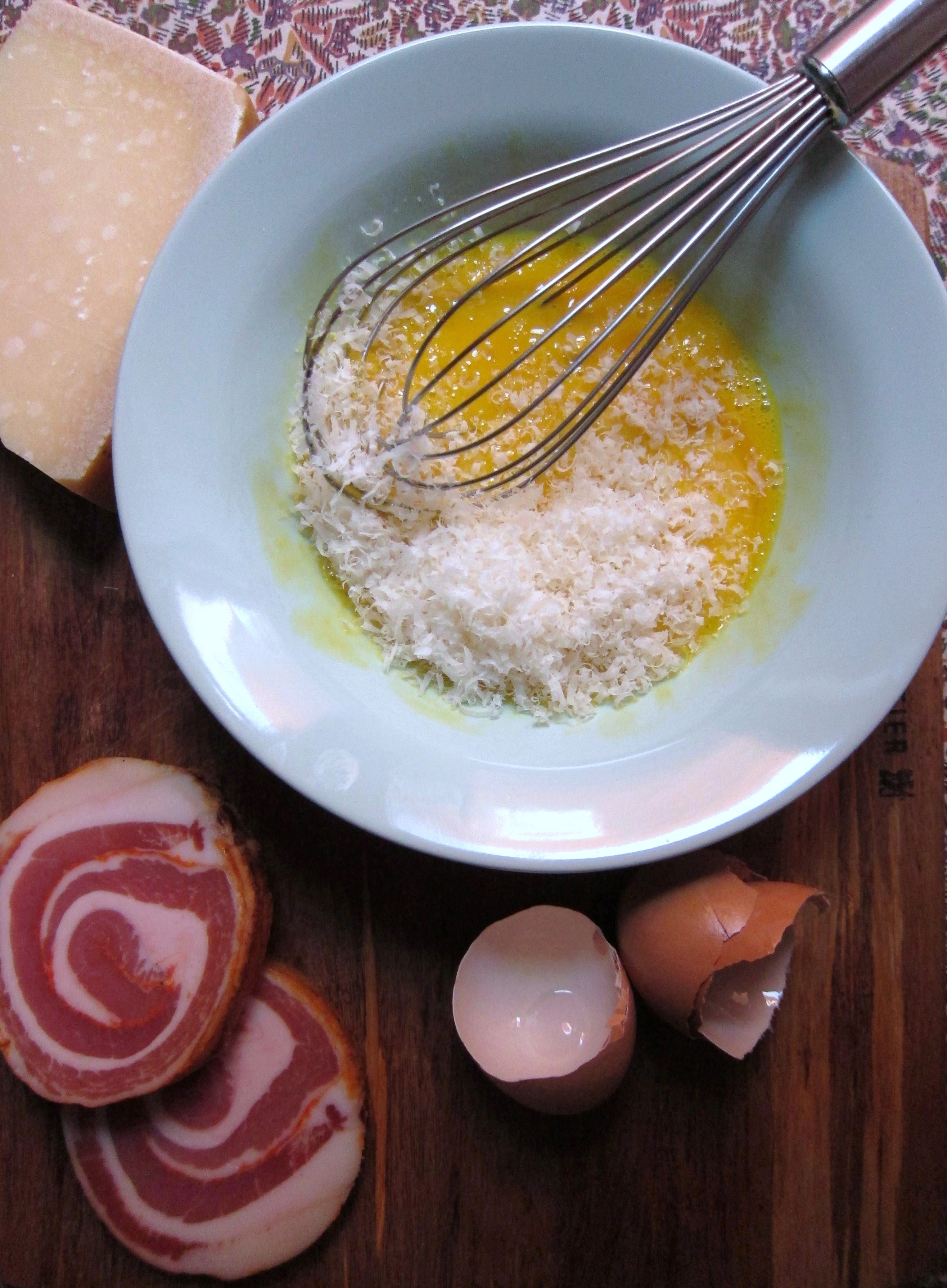 Little did I know, the stuff that I’d happily twirled onto my fork all those years wasn’t carbonara. At least not in the traditional sense. And when I look back on it, Eduardo’s version was nothing more than a mound of cloying, overcooked, cream-laden spaghetti littered with nubs of cheap bacon, masquerading as “spaghetti alla carbonara”. It would be enough to throw any self-respecting food purist into a total fit.