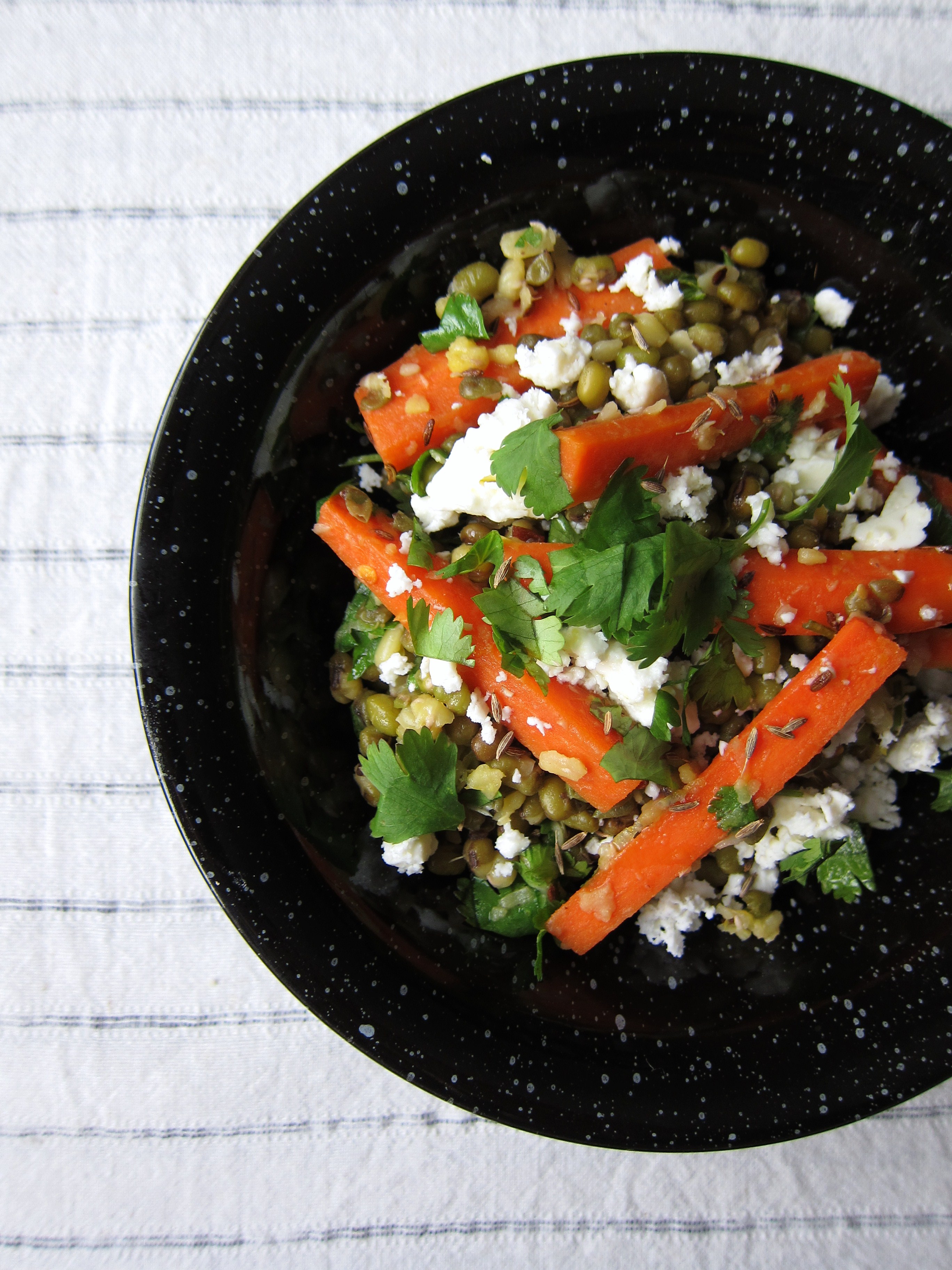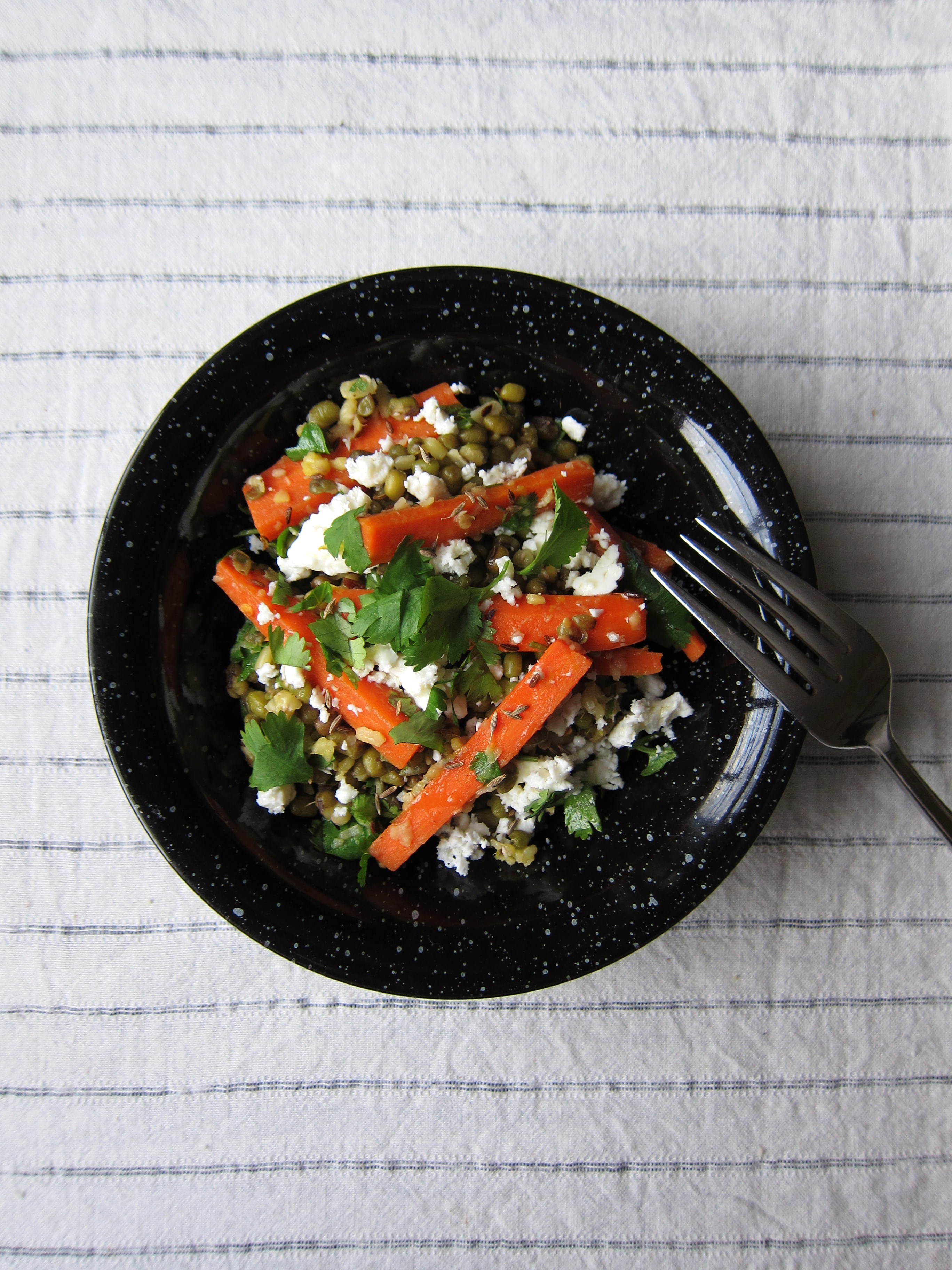 Mung Bean and Carrot Salad with Feta – lightly adapted from Yotam Ottolenghi